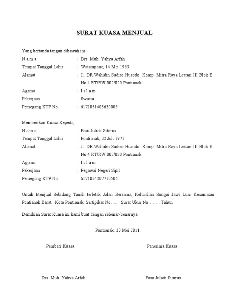 Surat Kuasa Menjual Tanah Dan Bangunan Contoh Portalinvestasi