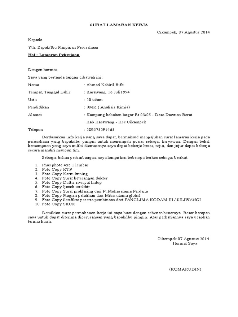 | Tanggal pembuatan Contoh Surat Lamaran Kerja Di Perusahaan Air Minum Download Contoh Surat Terbaik 2020: Oktober 2021 |
